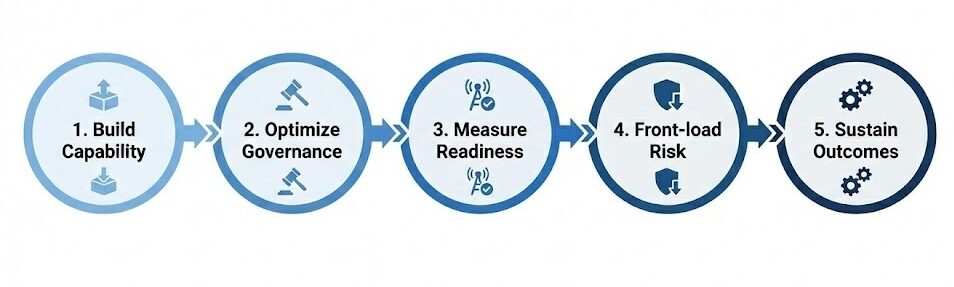 • Durable outcomes require operational readiness—not just launch optics