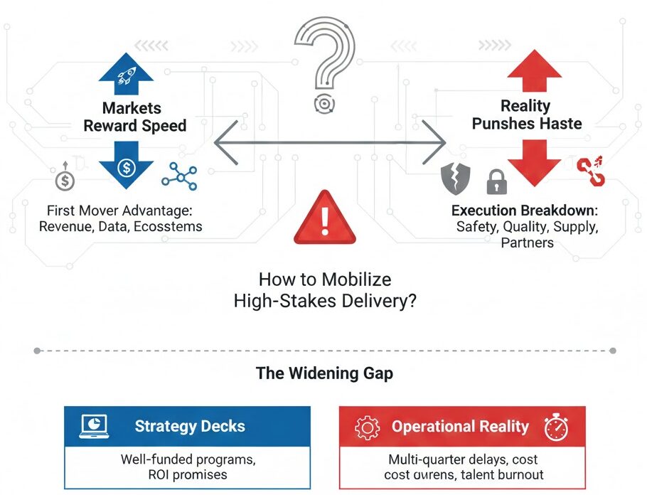 • Reality punishes haste. Safety, quality, compliance, supply volatility, and partner dependencies make “move fast” an expensive slogan when execution breaks down.